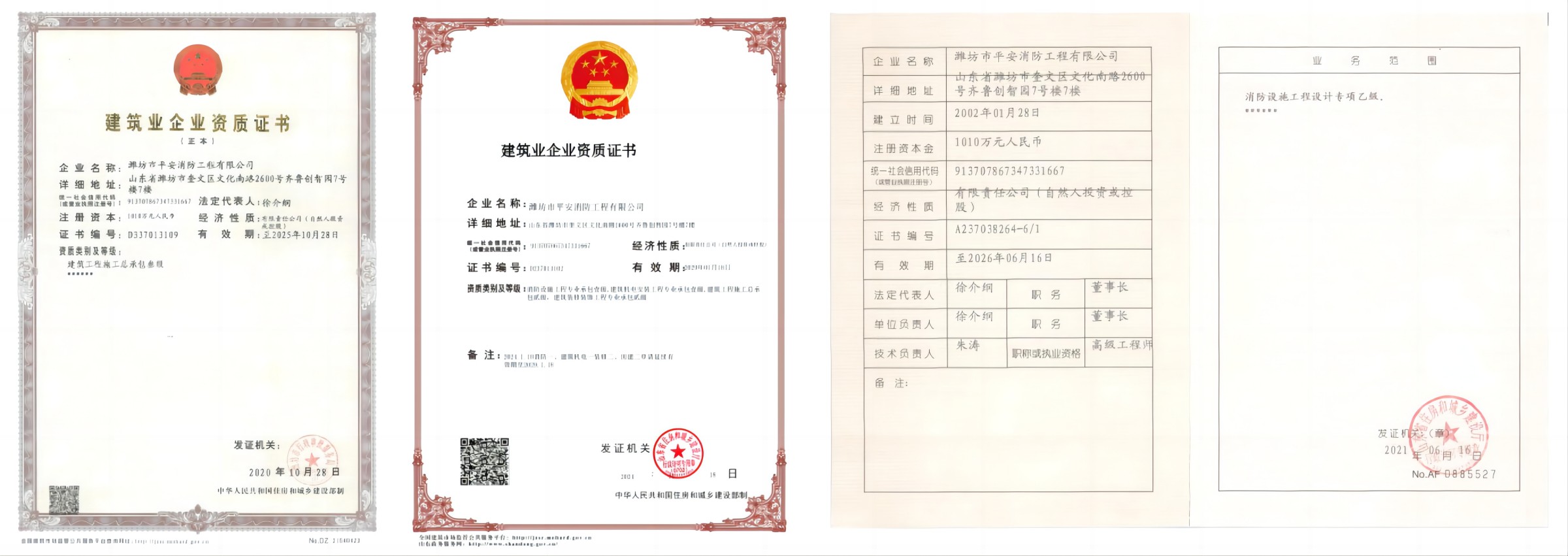 濰坊市平安消防工程有限公司 電話:0536-8384119 郵箱:pingan_wf@163.com 地址:濰坊市北宮東街3277號新華大廈A座5、6樓 地址:濰坊市文化南路2600號齊魯創(chuàng)智園7號樓7、8樓